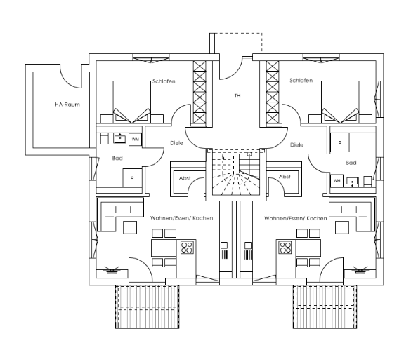 2 Zwei-Zimmer-Wohnungen jeweils ca. 54 m² mit West-Terrasse und hübschem Garten